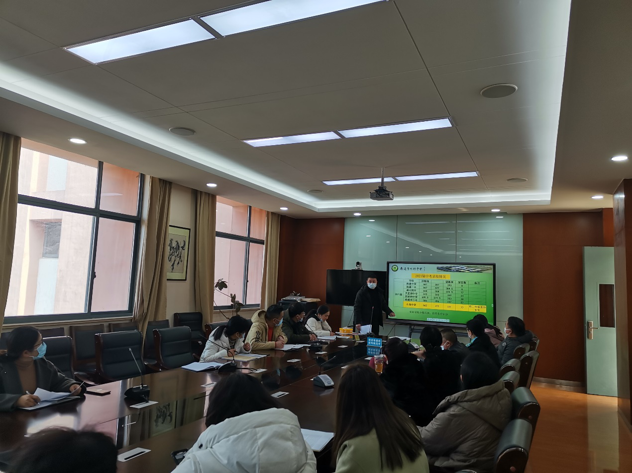 仇宇隆主任首先介绍了我校2021届中考情况,细致、详尽地分析了2022届上一学期期中、期末两次数据,明确了中考目标,并从教学常规方面希望老师们努力提高课堂效率,夯实学生基础,老师们把好首轮复习质量关。