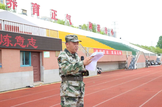军训团全体成员在操场集合,团长动员讲话,校长鼓舞士气,各连士气昂扬,整装待发。