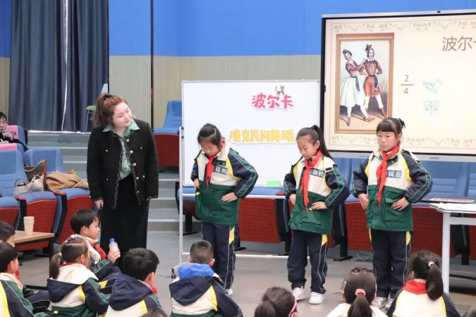 南通开发区实验小学教育集团星湖校区白净老师介绍了《乐动�波尔卡》的设计思路,在听赏活动中引导学生用熟悉的波尔卡舞步和基本伴奏方式为其他波尔卡伴奏,丰富了学生的音乐体验。