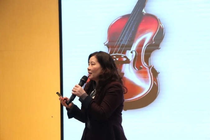 江阴市教师发展中心朱华琴老师的专题讲座《解锁大单元教学 精准施策音乐课堂》,以案例中国民族民间音乐——《运河之声》大气蓬勃的开篇,直击人心。朱老师认为民歌是音乐文化的基因,是音乐创作的源泉,民歌教学需要入情、入心,每一位老师要深挖课程背后的文化,为课程增加“厚度”。