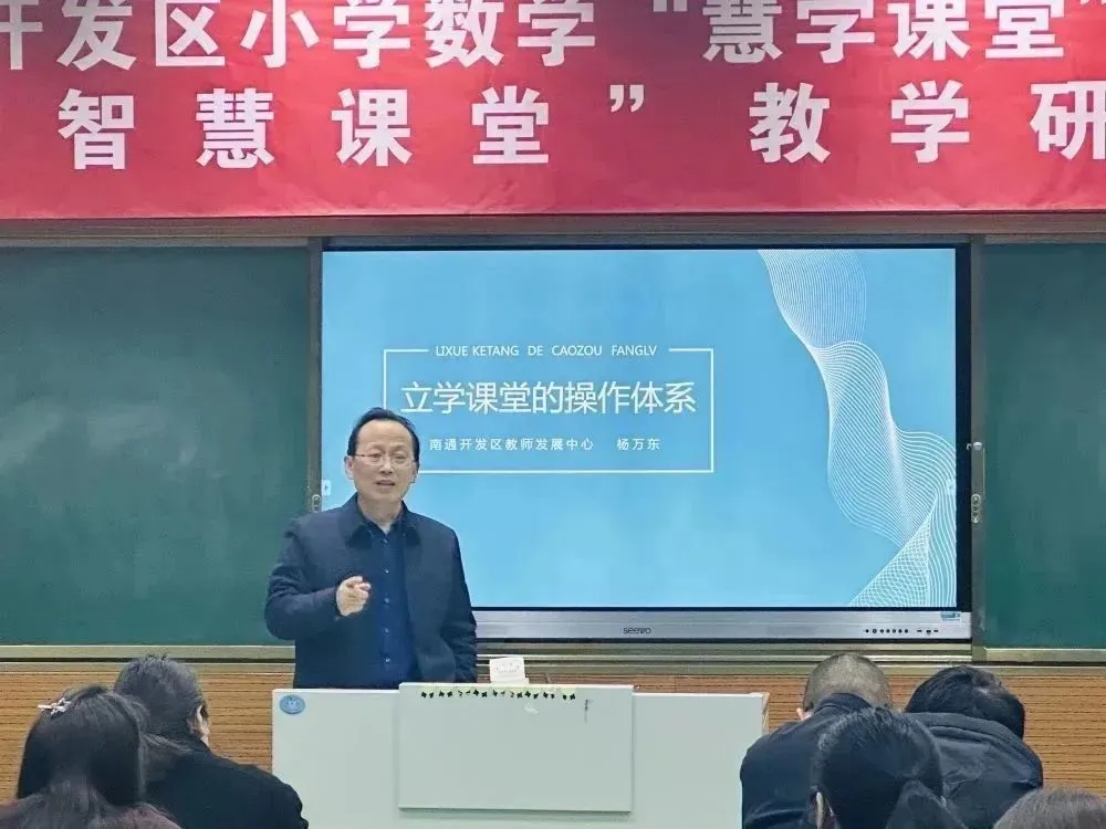 为进一步推进小学数学“慧学课堂”教学研讨,展示各校研究成果,2月28日召开了南通经济技术开发区小学数学“慧学课堂”教学展示暨“智慧课堂”教学研讨活动。本次活动由南通市经济技术开发区教师发展中心主办、南通市竹行小学承办。区教师发展中心副主任、小学数学研训员杨万东主持活动,开发区各小学数学骨干教师代表齐聚竹行小学。