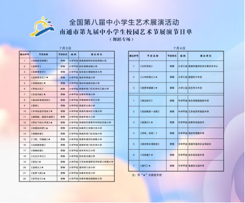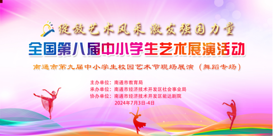 7月3日—4日,“绽放艺术风采、激发强国力量”全国第八届中小学生艺术展演活动暨南通市第九届中小学生校园艺术节现场展演(舞蹈专场)在南通市经济技术开发区文化馆(能达剧院)隆重举行。来自全市各县区32支舞蹈队近700名小舞者同台竞技、各展风采。