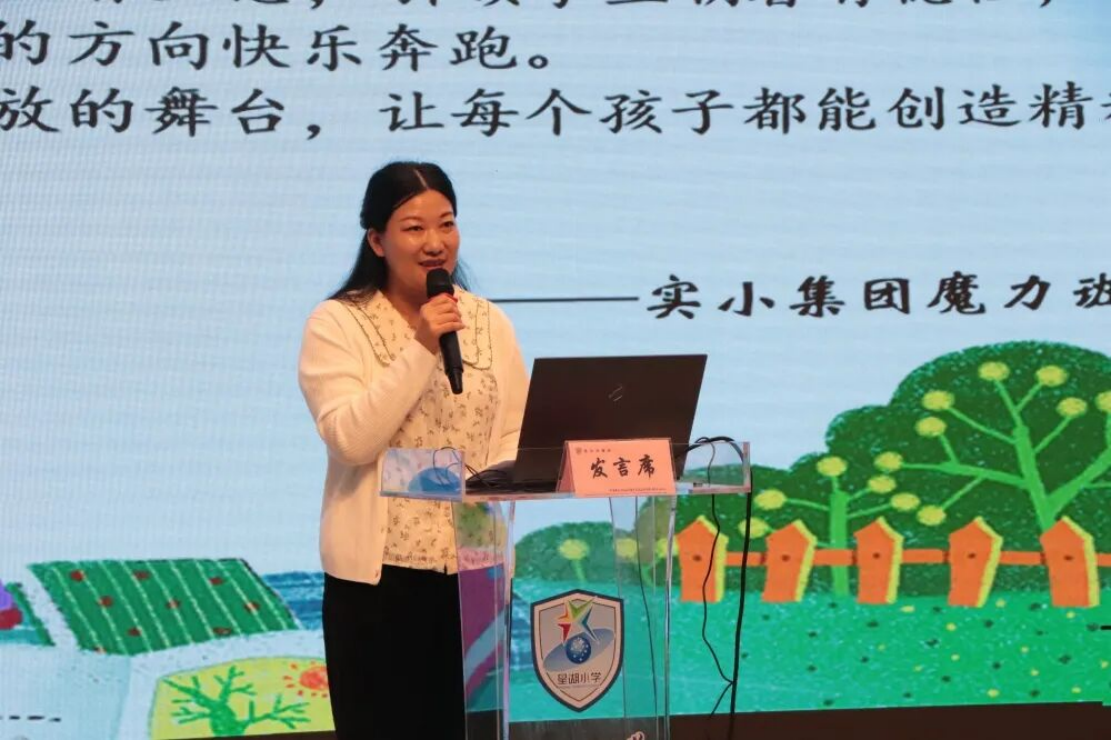 赵然老师立足缤纷社团,以生动的言语介绍了学校杨利伟卫星馆、钱学森科技馆、伯余华服馆、茉莉花茶艺馆、智能家居体验馆、小阿福陶艺坊、小聂耳排练坊、四季春植物园等孩子风采的平台,充分彰显了星湖多彩的场馆课程文化。