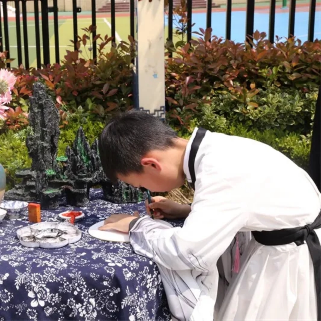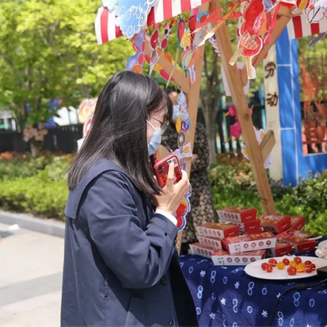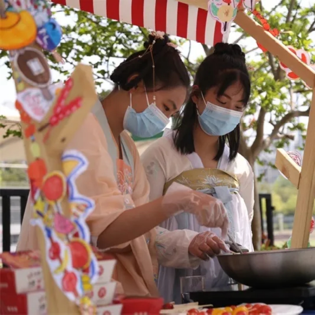 穿过春意盎然的崇真大道,扑鼻而来的是糕点甜香、纸笔墨香......身着汉服的孩子化身热情好客的文化使者,支起各色摊铺,摆满中华传统吃食与手工。