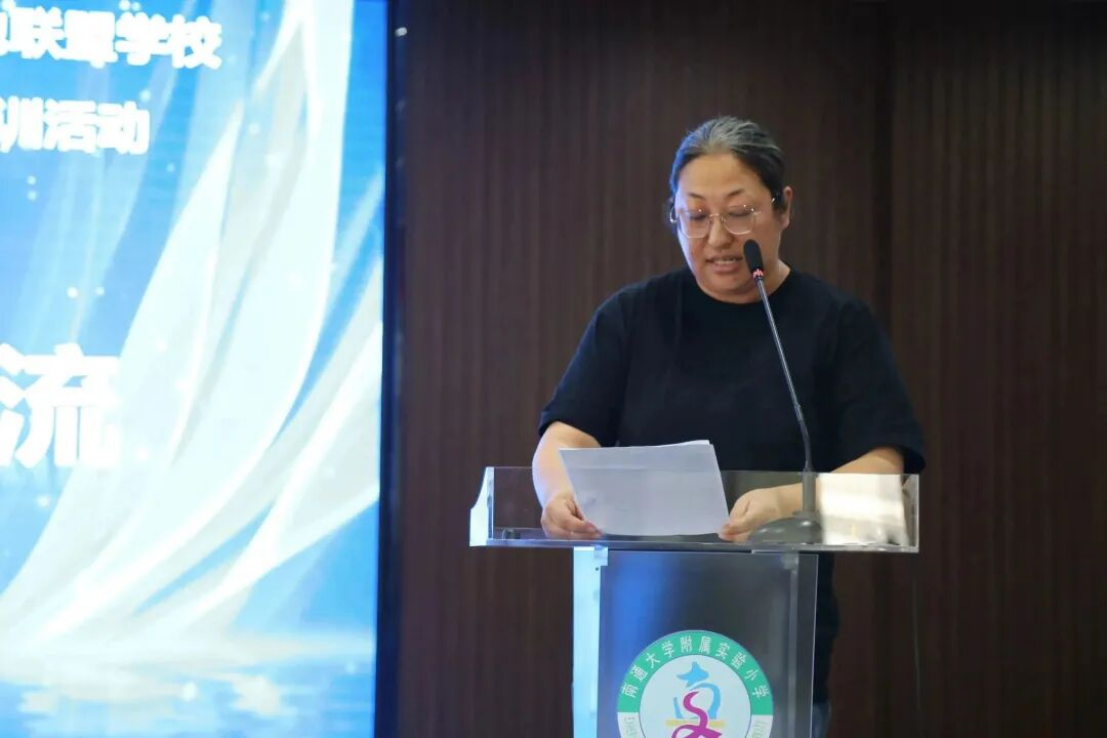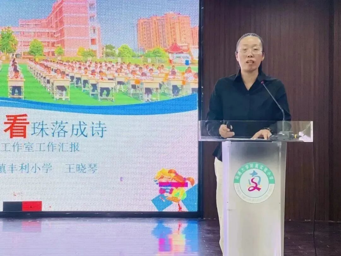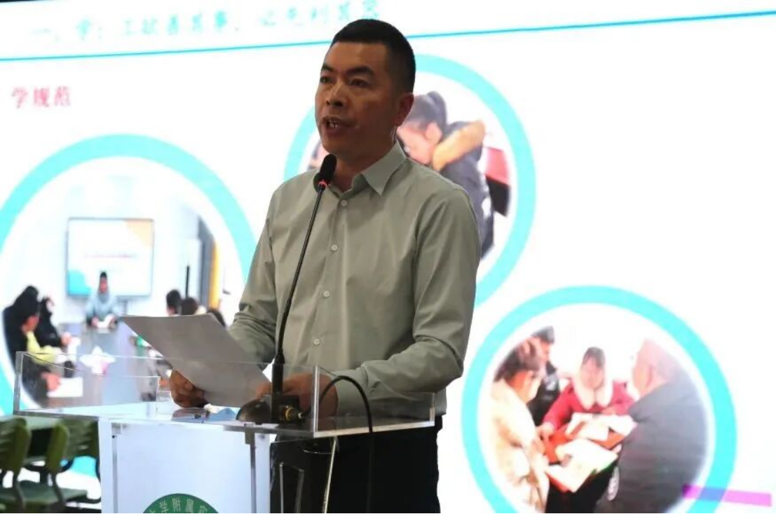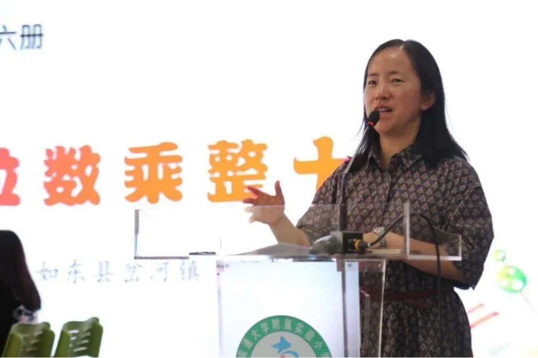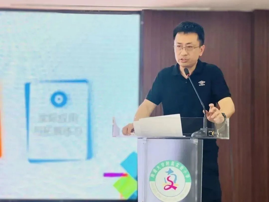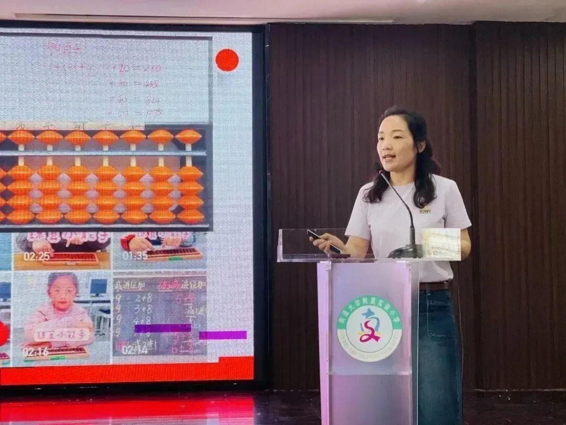 实小集团珠心算总教练杨晓林做了《聚焦“双减”,优化珠心算课堂练习设计》的主题报告。报告从课始、课中、课尾三个不同时段,结合具体课例,详细讲述如何优化珠心算课堂练习设计,报告有温度、有高度、有深度,令人深思。