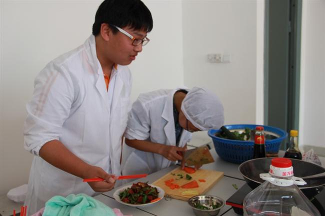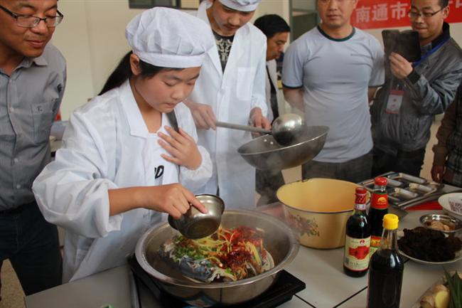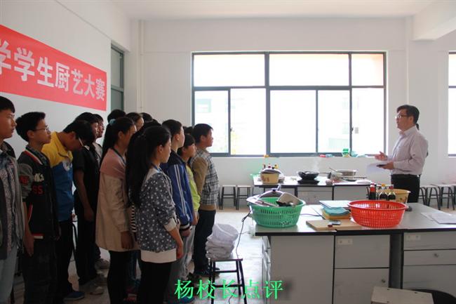 为培养学生的动手能力,增强学生的社会适应能力,丰富校园文化生活,4月3日,一场别开生面的厨艺大赛在竹行中学劳技教室内拉开序幕。孩子们系上围裙,拿起菜刀、锅铲,纷纷使出了自己的看家绝活…… 七、八年级每班各派出了3名选手参加比赛,按要求在规定的时间内制作一道具有地方特色的热菜。比赛开始,孩子们有条不紊地操作起来,有人刷锅,有人洗菜,有人放辣油,有人切肉。学生们娴熟的刀技,明确的分工和默契的配合都令在场的评委和观众赞叹不已。时间不长,教室内已是辣味扑鼻,一些观众已经“逃”出了教室,而这些学生却是安之若素。经过大家的努力,十几盘颇具地方特色的菜肴一字排开,有湖南学生烹制的剁椒鱼头,有贵州风味的麻辣红烧鲫鱼,还有四川学生烹饪的酸菜鱼……尤其是那道剁椒鱼头,很好地将鱼头的“味鲜”和剁辣椒的“辣”融为一体,风味独具一格,比一些菜馆的水平还要地道。 比赛结束后,杨苏校长当场宣布了比赛结果,对选手们的表现进行了点评,并期望大家能像烹饪美味菜肴一样创造自己的美味人生。 据了解,学校之所以举办这次厨艺大赛,一是现在的中学生多是独生子女,做家务的时间并不多,二是我校学生大多来自全国各地,比较了解家乡菜肴风味。这次比赛不仅培养了学生的团队合作能力,锻炼了他们的动手动脑能力,同时也让全国不同菜系的特色佳肴汇聚在一张小小的桌案上。另外考虑到安全因素,比赛时学校为每个班级安排了指导老师,防止炒菜的过程中,学生遇到突发状况因经验不足而不知道怎么处理。
