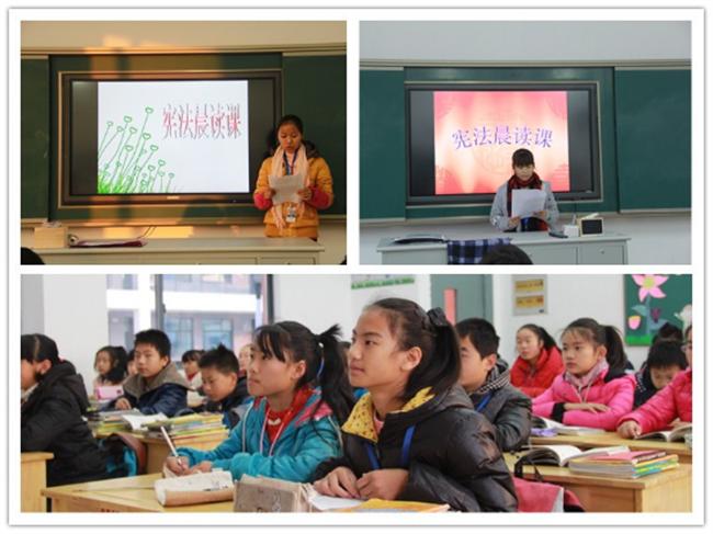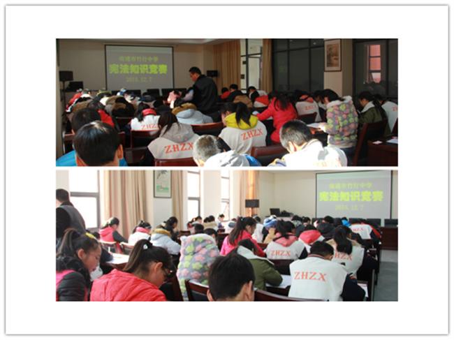 今年12月4日是我国的第二个国家宪法日也是第15个全国法制宣传日,根据上级下发的《关于开展2015年国家宪法日暨全国法制宣传日系列活动的通知》精神,我校重点开展了如下活动。 1、12月4日,我校安排了“一次宪法晨读”,选择适当的章节、条款,组织学生集中朗读,了解宪法的基本原则和主要内容。 2、12月7日,组织所有班级上了一堂以学习宪法知识为主题的班会课。 3、12月7日和11日分别组织了部分学生和全体教职工进行了一次宪法知识竞赛。围绕“宪法是国家根本法”这一主题,开展了宪法主题教育活动。 通过以上“三个一”活动,切实加强了对广大师生的法制教育,尤其是宪法教育,积极营造了师生崇尚宪法、遵守宪法、维护宪法的浓厚氛围。