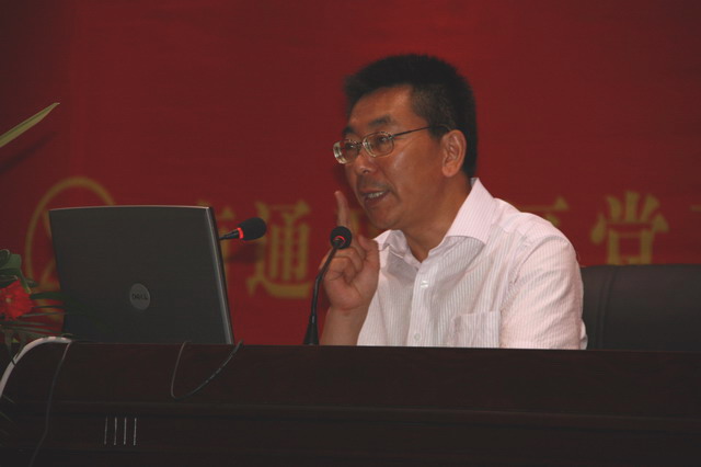 全国优秀教师、江苏省特级教师、通州市教育局副局长郭志明同志于7月17日上午在我校多功能报告厅围绕教育教学的几个话题,其中主要针对“职业幸福”发表了自己富有创见的看法,他认为“职业幸福缘于教师拥有的窗口”,老师们可以在阅读与交流中提升自我,优雅人生,获得幸福。