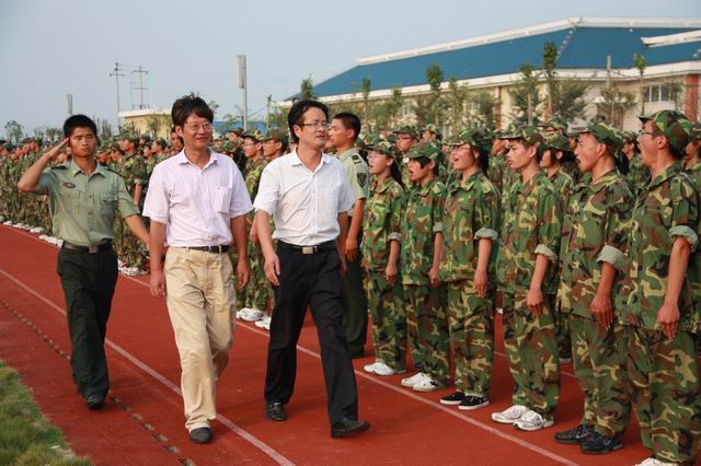 炎炎烈日,咸湿海风,南黄海特有的天气对我校参加军训的高一新生发起了强有力的挑战。 8月22日——28日,短短7天时间,让同学们留下了终身难忘的印象。绿色迷彩服、教官的口令声、大滴的汗水、成群的蚊虫、构成了军训的全部内容。但是“立正”、“稍息”让同学们克服了懒散,艰苦、严格让同学们磨练了意志,晒黑的肌肤,湿透的军装让同学们在自己的心灵里融进了士兵的元素。 随着阅兵式的结束,同学们就将带着军训的收获走上新的征程。