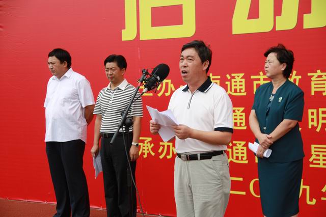 这次活动由南通市教育局基教处牵头并与南通市委宣传部、南通团市委、南通市文明办共同主办,天星湖中学承办,市委宣传部叶小平部长、市教育局秦建荣副局长、市文明办杨洁副主任和来自南通大市各教育局分管局长、德育科长以及参加南通市中学生庆祝新中国成立60周年知识竞赛的8支代表队队员、东方中学3300多名师生共同参加了启动仪式。仪式由团市委副书记赵新叶主持,叶小平部长、秦建荣副局长、杨洁副主任分别作了重要讲话,天星湖中学校长、党总支书记徐新民作为代表在启动仪式上发言。与会人员还兴致勃勃地观看了天星湖中学高一新生的军训成果展示。