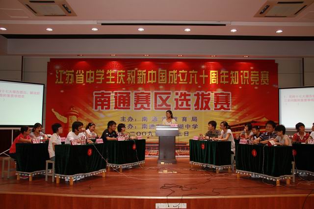 紧接着启动仪式,南通市中学生庆祝新中国成立60周年知识竞赛在天星湖西区报告厅拉开帷幕,经过两个多小时的多项角逐,通州区等三支代表队获一等奖。