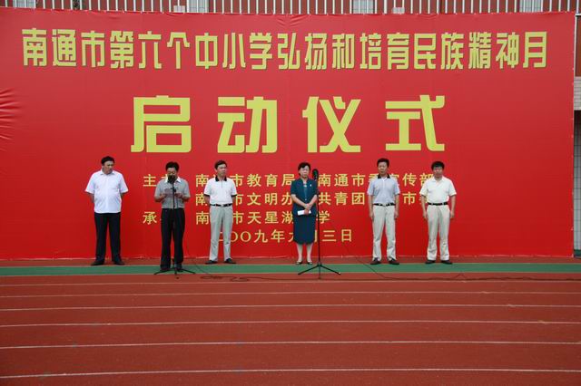 9月3日上午,在天星湖中学的东方中学校区绿茵场上,南通市第六个“中小学弘扬和培育民族精神月”正式启动。