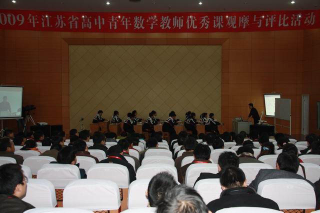 11月18~20日,江苏省高中青年数学教师优课观摩与评比活动在我校举行。18日下午500余位观摩的老师报到,19日来自省内27位优秀青年教师上观摩评比课,20日上午将有2位数学特级教师展示他们的课堂教学艺术,接着省教研室将为获奖的高中青年数学教师颁奖。 这样大型的教研活动我校是首次承办,它必将有力推动我校的课程改革和学校管理,我校也将乘这次教研活动的东风,使学校的教育教学质量迈上一个新的台阶。