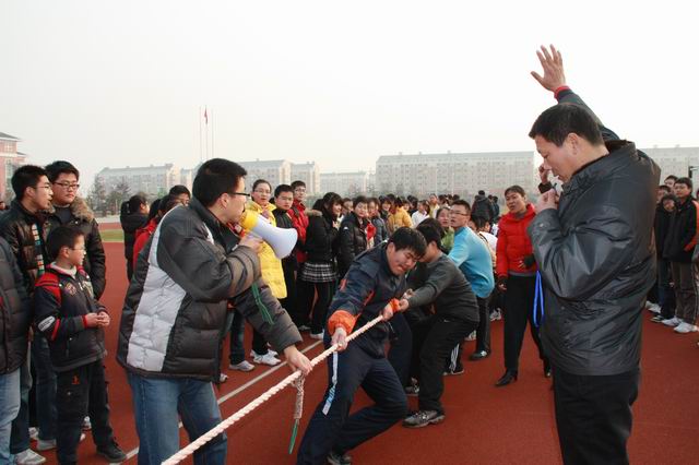 天中学子冬季拔河战犹酣 数九寒天,北风凛冽,气温骤降,而在天星湖中学运动场上,加油声、呐喊声、鼓掌声此起彼伏,气氛一浪高过一浪。为了强健体魄,活跃校园,激发同学们的团队意识和集体荣誉感,由体育组组织开展的学生冬季拔河比赛正一场接着一场地进行着。经过数轮角逐,高一年级组第一名获得者为高一1班,第二名为高一4班,高一2、高一5并列第三名。