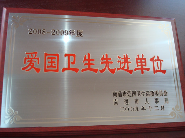 近日,南通市爱国卫生运动委员会、南通市人事局向我校颁发了2008——2009年度“爱国卫生先进单位”的荣誉奖牌。 长期以来,我校一直把个人卫生、环境卫生作为爱国卫生运动的重要内容。作为提升学校形象的重要手段。无论什么时候走进天星湖中学的校园,你都会看到整洁的路面,明净的门窗,成荫的绿树,富有生机的花草。如今,名至实归的荣誉奖牌将推动我校的爱国卫生运动迈向一个更新更高的台阶。