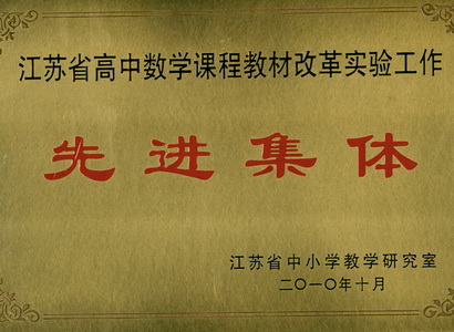 近日,我校被江苏省中小学教学研究室评为“江苏省高中数学课程教材改革实验工作先进集体”,现将奖牌展示于后。