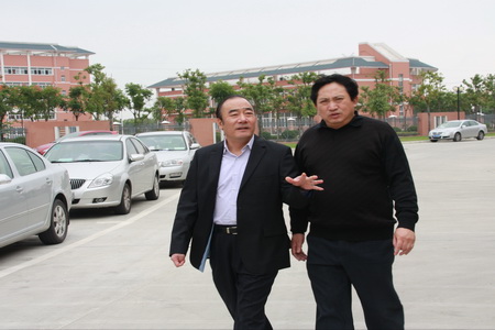 沈市长(左一)在徐新民校长陪同下视察校园