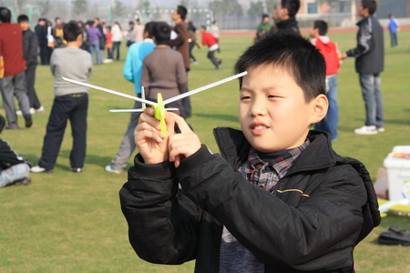 南通市2010中小学航模比赛在我校举行 艳阳下,草坪上,中小学生们怀着喜悦而又激动的心情,放飞着一只只自己设计制作的飞机等航空模型,同时也放飞着自己的理想和希望。