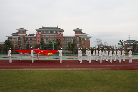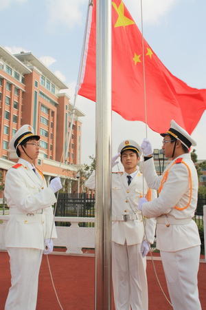 25日上午9:30分,在开发区党工委陈德新书记的陪同下,评估专家组一起出席并观看了天星湖中学的升国旗仪式。 在欢快的乐曲声中,在全体师生的注目礼下,学生仪仗队簇拥着鲜艳的五星红旗迈着正步进场,然后升旗手在国歌的伴奏声中将五星红旗缓缓升起。接着,高二6班顾嘉雯同学发表了题为《世界因感动而温情荡漾》的国旗下讲话。 本次升旗仪式由高一9班黄煜主持。
