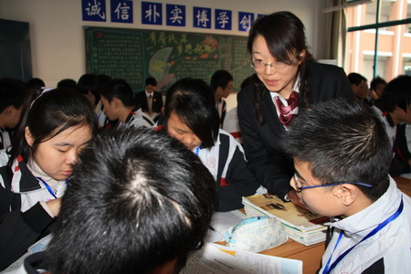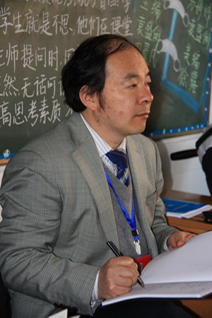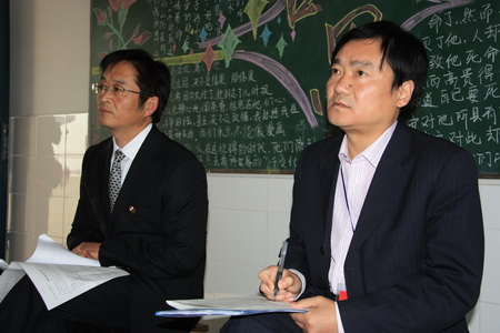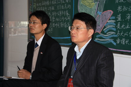 25日下午,评估组专家又投入了紧张的连听两节随堂课的评估工作。听课过程中,专家们边仔细听课,边认真记录,有时还悄悄地走近学生,听他们的即席讨论,看他们的当堂作业和电脑构图。