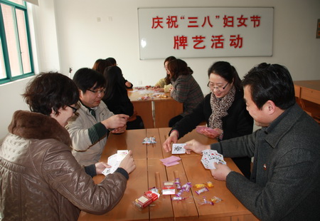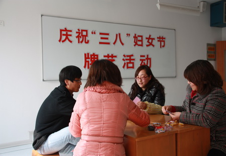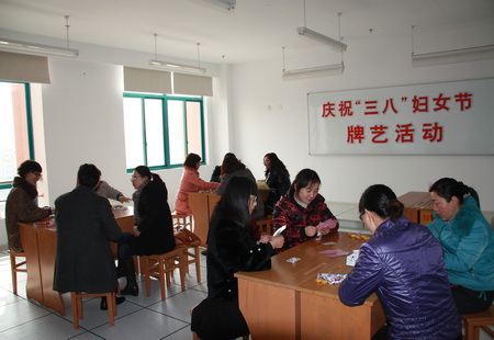 为了庆祝妇女同胞的节日,我校举办了一系列活动。早在3月7日(周一),我们利用升旗仪式的机会,发表了热情洋溢的题旨为“庆祝妇女节,祝福女同胞”的国旗下讲话;当天,组织女教职工开展了牌艺、健身、乒乓球等项活动,还发放了一份纪念品。