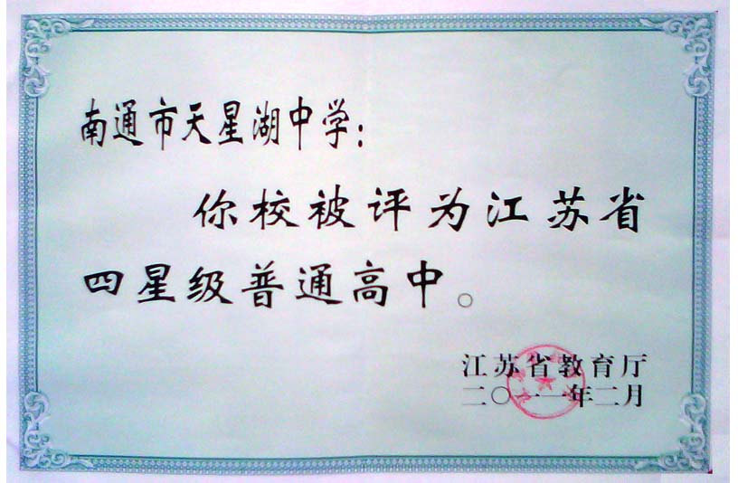 学校的成功晋级,是南通经济技术开发区党工委、管委会长期以来重点扶持、正确引领的结果,是广大教职工员工辛勤工作、积极进取的结果,也是社会各界密切关心、鼎力相助的结果。对此,谨向为天星湖中学的建设和发展作出重大贡献的各级领导、各位老师、各界人士表示诚挚的感谢。 学校的成功晋级,对学校无疑是新的鞭策和激励。我们将以此为契机,直面新挑战,注入新活力,瞄准新目标,步上新台阶,凝聚全体天星湖人的智慧和力量,把天星湖中学真正办成市内有地位、省内有影响的一流的高级中学。
