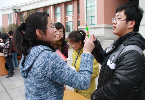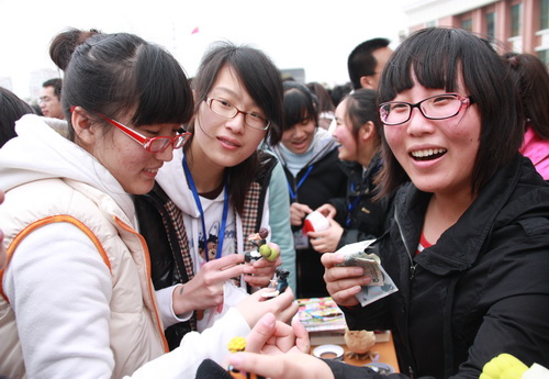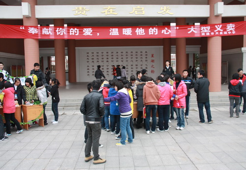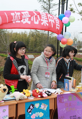 春天里的“爱心义卖” 3月的天气,乍暖还寒,14日中午,尽管天公不作美,但是一股股爱心暖流却在南通市天星湖中学的校园里悄然涌动。由学校团委、政教处、学生会联合发起的“奉献你的爱,温暖他的心”大型义卖活动正在进行。 每年3月的爱心义卖是天星湖中学的传统品牌活动,此活动是为了帮助学校家境困难的学生能够顺利完成高中三年的学业,通过现场义卖的形式筹集爱心基金。名家字画、NBA火箭队限量版队徽、学生亲手创作的油画、书法作品、彩绘T恤等颇受欢迎的商品立即吸引住了众多师生的眼球,大家争相竞拍和购买,每个各具特色的商铺前可谓人山人海、接踵摩肩。 据统计,本次爱心义卖活动摆开的义卖店铺达35个,参与的师生达1300多人,现场义卖所得 1万余元。此次义卖所得款,将存入学校“爱心基金”,用来帮助那些家境贫寒而又刻苦学习的同学。