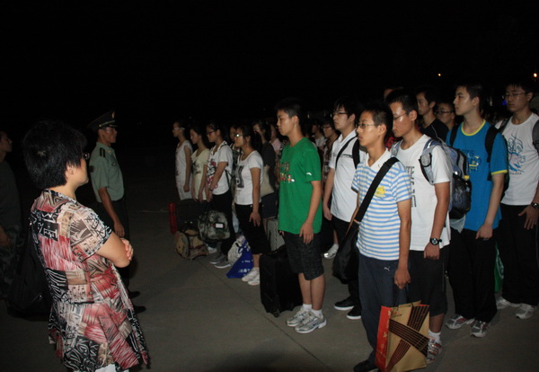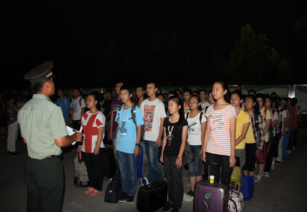 去军训的路上,大雨下个不停。为了确保安全,飞鹤公司的师傅们个个全神贯注,不但放慢了车速,一路上还都在车身的两侧和后侧闪烁着警示的黄灯。浩浩荡荡的车队煞是壮观。 老天还真是有眼,快到如东军训基地时,雨渐渐停了下来。6:30分左右,车队驶进了军训基地。 教官们早已等候在了现场,一等同学们走下车,他们就各自按照班级名单边点名边安排宿舍。还没有等同学们从对军训的美好遐想中回过神来,还没有等同学们开始以肃然起敬的眼光来欣赏教官们威武英俊的军姿,教官们的严肃认真、不苟言笑、毫不留情倒让大家始料未及。于是同学们个个以凝神屏息和大声喊“到”与教官们作为初次的交流。