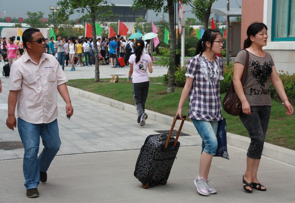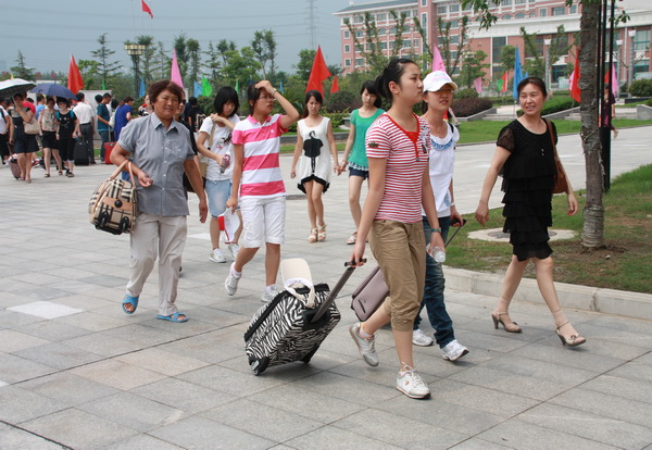 高一新生军训之报到       为了贯彻《国防教育法》,加强学校国防教育,提高学生国防意识,在2011级高一新生即将开学之际,我校将于8月13日—19日,组织本校600名高一新生奔赴南黄海之滨、位于如东小洋口的南通市国防教育基地,对学生进行为期一周的基本军事训练。     8月13日下午1:30分,是参训高一新生集中报到的时间。中午12:30左右,就有学生在家长的陪同下陆续到校报到,有的家庭为了给学生鼓劲,除了父母亲之外,爷爷、奶奶、外公、外婆也跟着送孙子、孙女来校。一时间,校门外送新生报到的各种车辆纷纷云集过来,由于保安及时疏导,才基本没有形成拥堵。     1:00刚过,倾盆大雨不期而至。大雨虽然淋湿人们的衣衫,但并没有减弱高一新生报到的热情。雨中,报到队伍里一幕幕父女情、母子爱更让人感叹不已,嘘嘘不止。