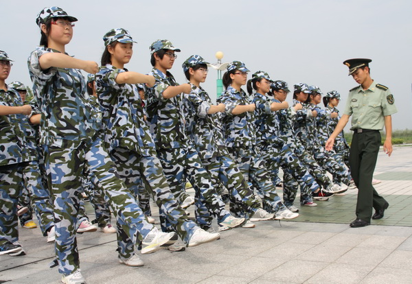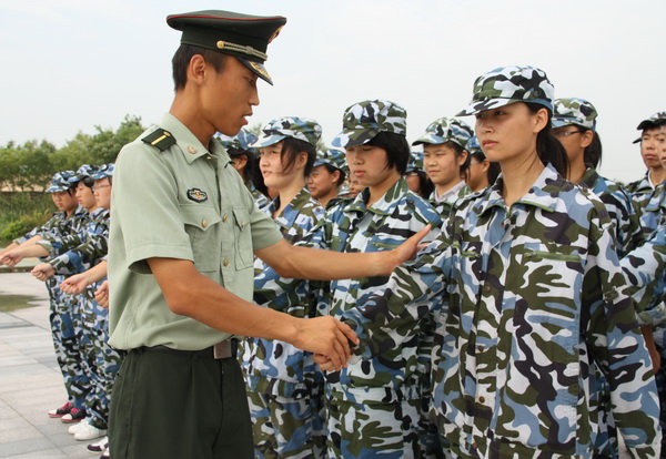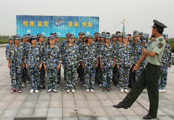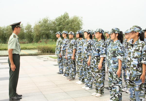 俗话说:冬练三九,夏练三伏。今年的夏天,阴雨连绵,阵雨经常骤然而至。突如其来的雨水常常让同学们淋湿了衣服,停雨后云间闪出的太阳又让人闷热异常。同学们的衣服外边被雨打湿,里边被汗浸湿,个中滋味只有他们才能深切体会。 但面对教官的口令,同学们丝毫不敢有所懈怠。立正如铁塔一尊,正步如排山倒海。敬礼时,目光炯炯;跨列时,气宇轩昂。 教官们比学生更加辛苦,他们既要不厌其烦地教,还要一个一个动作的示范,一个一个同学的纠正。在教官和同学们的密切配合下,经过短短几天的训练,同学们的动作还真是有模有样,中规中矩。在旁边观战的班主任看在眼里,美在心里,同学们当然更觉得十分神气自豪。
