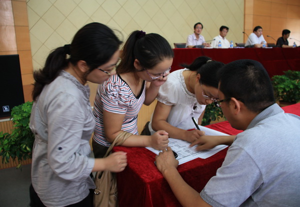 新学期第一次教职工大会 9:05分,大会正式开始。在会议主持人朱卫东副校长介绍了本学期新进入我校的9名新教师(其中5位在职、4位应届)和宣布了校长室人员分工之后,徐新民校长作了开学工作报告。 徐校长首先简略回顾了上学期学校开展的主要工作并获得的成就,分年级通报表扬了取得优异成绩的有 分管教学的陈明华副校长就新学期教学工作提出了“切实加强教学常规管理,有效形成齐抓共管状态”的总体目标,明确了“备课的精细、上课的精致、训练的精实”的教学追求,强调了年级主任负责制、学科集体备课制、专家组听课评课制的刚性要求。总之要齐抓共管、动真碰硬、求真务实。 葛红军校长助理就分管的学生德育教育工作, 11:30分,教职工大会结束。近两个半小时的会议,讲者绘声绘色,听者聚精会神。
