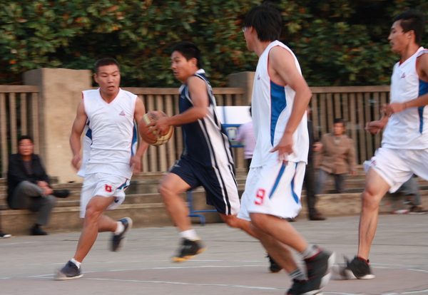 我校教工篮球队与南通农场篮球队举行友谊赛 在四节近两个小时的比拼中,我校教工篮球队尽管平均年龄较高,体力明显不及农场篮球队的小伙子们,但大家依然全力拼抢,灵活传接,果断投篮,比分交替上升。农场篮球队的整体配合与个人技巧博得了观众的阵阵喝彩,给我们留下了深刻印象。 南通农场总工会贾主席热情接待了我校教工篮球队,并陪同我校工会葛红军主席自始至终观看了比赛。