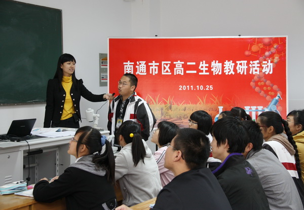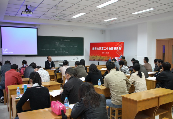市区高二生物教师集体备课在我校举行 下午二点活动准时开始,首先由天星湖中学杨友凤老师和南通市第三中学徐雪梅老师分别在生物选修班、必修班执教了同一个课题《生态系统的结构》,课后大家对照《2011年江苏省高中生物优质课评价表》和围绕本次活动的主题进行了点评。大家一致认为,两节课围绕主题,经过认真研讨、精心打造,具有示范性和研究价值。然后天星湖中学刘郇老师作了《关于高二选修、必修教学定位的几点思考》的专题讲座,就高二选修与必修的考试性质与特点、课堂教学内容及难度把握等方面进行了深度交流与研讨。