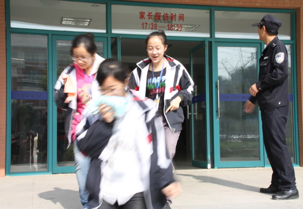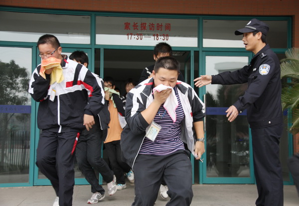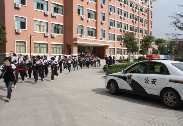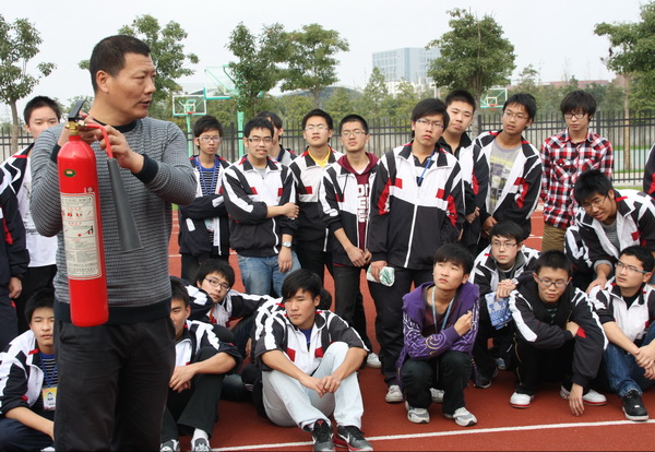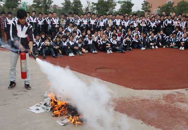 我校开展消防疏散演习 长期以来,我校根据寄宿生多的特点,将消防疏散演练看成是学校安全工作的重要一环,并每年定期组织一次演练,借以强化学生的安全意识,提高学生的自我保护能力。 在本次疏散演练结束之后,我们还特地培训了宿舍安全消防员。政教处曹俊飞主任详细讲解了灭火器的使用方法,并亲手示范,最后安排学生进行实物操作,为消灭事故隐患打下了坚实基础。