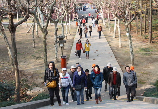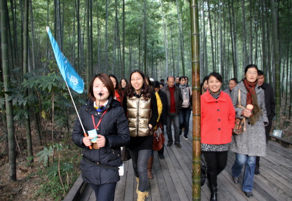 班主任秋游记 3日(周六)上午,在蒙蒙薄雾中,大家首先来到了全国首批五A级风景区--中央电视台影视基地--水浒城。在观赏了“三英战吕布”、“桃园三结义”等影视剧中的精彩片段后,冷空气带来的寒风也并不在意。下午,又驱车来到了南山竹海,在空中缆车上,俯瞰无边无际的竹的海洋,真让人心旷神怡,如入仙境。 4日(周日)上午,大家又成了天目湖的游客。广袤的湖面,薄雾笼罩,水天相接。游轮先把大家送到了龙兴岛,观光游览了1个多小时后,又被游轮接到了山水田园景区。山坡碧绿的茶树、水面粼粼的波光、田园小巧的景致,让人流连忘返。不觉中午已到,美味中自然少不了闻名中外的天目湖鱼头。 视觉的盛宴与物质的美味,让每一位班主任将原有的紧张、烦恼抛到了脑后,愉悦的心情在山水间得以自由放飞。
