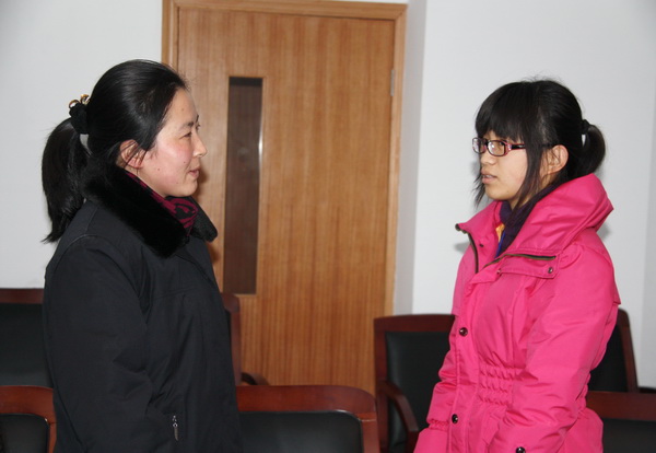 周检察官与受助学生亲切交谈