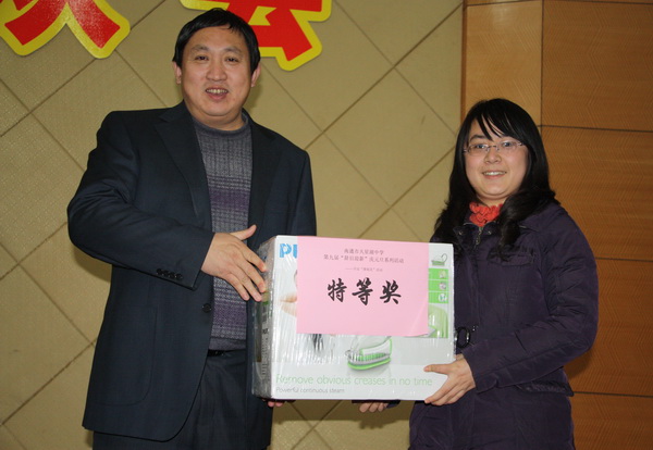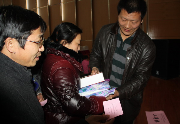 在新年的钟声即将敲响之际, 联欢会首先由学校党总支书记、校长徐新民致辞,他感谢全体教职员工在过去的一年里为学校的快速发展作出的积极贡献,并且祝福大家在新的一年里再接再厉、心想事成、身体健康、合家幸福。 在联欢会举行之中,有唱歌特长的老师纷纷登台,一展歌喉,为联欢会营造气氛,推波助澜。 抽奖活动更是联欢会的重头戏,引发了全体与会人员的遐想与激情。徐新民校长,朱卫东、葛红军校长,耿建主任等分别为大家抽取了特等奖、一等奖和二等奖等奖项。在欢声笑语中,老师们忘却了平时工作的烦恼,融进了其乐融融的大家庭的温暖怀抱。