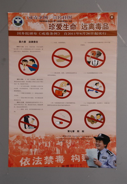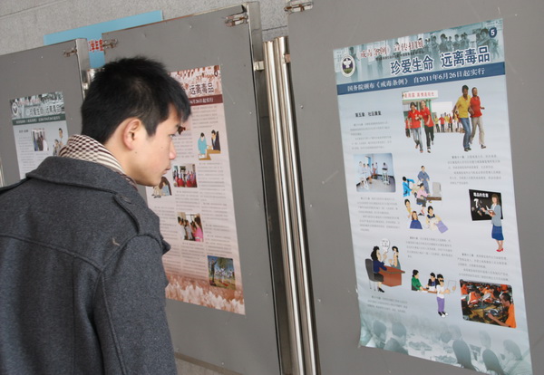在寒假即将开始之时,我校一方面为了让学生抵御社会不良风气的侵袭,另一方面为了让学生担任义务宣传员,学校政教处特意制作了以“珍爱生命,远离毒品”为主题的专栏宣传图片在校园里张贴宣传,以便让学生了解毒品的危害,从而不但自己远离毒品,还利用假期在社会上进行义务宣传,让毒品成为过街老鼠,人人喊打。 于是,反毒宣传图片成了一份特殊的寒假作业。