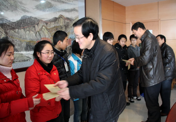 关爱温暖学子心 当受助学生从学校领导手中接过慰问金时,脸上露出了喜悦的微笑。他们知道,这不是几张有形的钞票,而是包含了学校领导、老师的一份爱心。