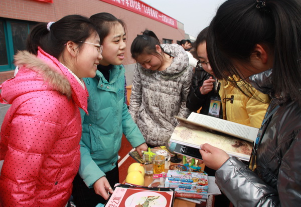 活动现场,也有不少老师参与“爱购”行列,同学们不失时机地向老师们推销自己班上筹集到的义卖品。中午短短一小时,义卖收入共计11866.1元。