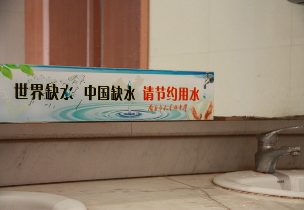 今年3月22日是第20个世界水日,为增进全校师生对保护水资源重要性的认识,学校开辟专题宣传栏目,进一步强化师生的节水意识。同时,几年之前,总务处就在厕所的水龙头旁都粘贴上了节水宣传标语;对便池上方的冲水设备全部进行了改造,使之人来水冲,人离水停,有效地节约了水资源。