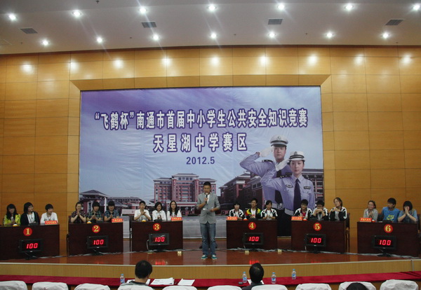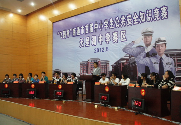 为迎接南通市首届中小学生公共安全知识竞赛,加大安全防范力度,增强自我保护意识,积累自防自救经验,我校政教处于 竞赛内容来自“南通市学生公共安全知识竞赛”委员会所提供的题库,其主要为发生在学生周围的生活细节、日常风险。比赛环节分为个人必答题、小组必答题、抢答题、风险题等。 在紧张激烈的比拼中,同学们集体主义的观念、积极进取的精神、才思敏捷的作风都得到了充分的体现。