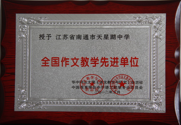我校获“全国作文教学先进单位” 近日,华中师范大学《语文教学与研究》杂志社、中国教育学会中学语文教学专业委员会联合授予我校为“全国作文教学先进单位”。 作文教学是语文教学的重要内容,作文能力是衡量学生语文水平的重要标杆。长期以来,我校语文学科的老师们群策群力,积极探索作文教学的成功之路,大胆推行作文教学的创新之举,为激发学生的写作热情费心机,为开拓学生的写作园地花本钱。当学生一篇篇文质兼美的文章诞生的时候,当高考中学生语文成绩高人一筹的时候,老师们平时的辛苦与付出得到了最好的汇报。如今,“全国作文教学先进单位”荣誉的获得,必将进一步激励语文学科组同仁们的热情,为学校的作文教学再注入新的活力,再取得新的成绩。