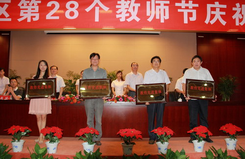 9月10日下午,我校部分教师参加了我区第28个教师节庆祝大会。
