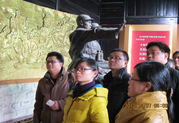 徐新民名师工作室赴泰兴二中进行教研活动 12月7号,我校徐新民名师工作室部分成员乘车前往泰兴二中进行交流学习。泰兴二中校长张建东向工作室成员详细介绍了学校的发展史,以及近年来取得的教学业绩,并就他们学校教育改革的情况,作了经验介绍。工作室成员进入课堂观摩了两节课,并在课后参加了评课活动。 在泰兴二中交流结束后,工作室成员前往黄桥镇,参观了“新四军黄桥战役纪念馆”,缅怀革命前辈为了新中国抛头颅洒热血的热血 情怀。千年古镇的独特韵味,也让工作室成员流连忘返。